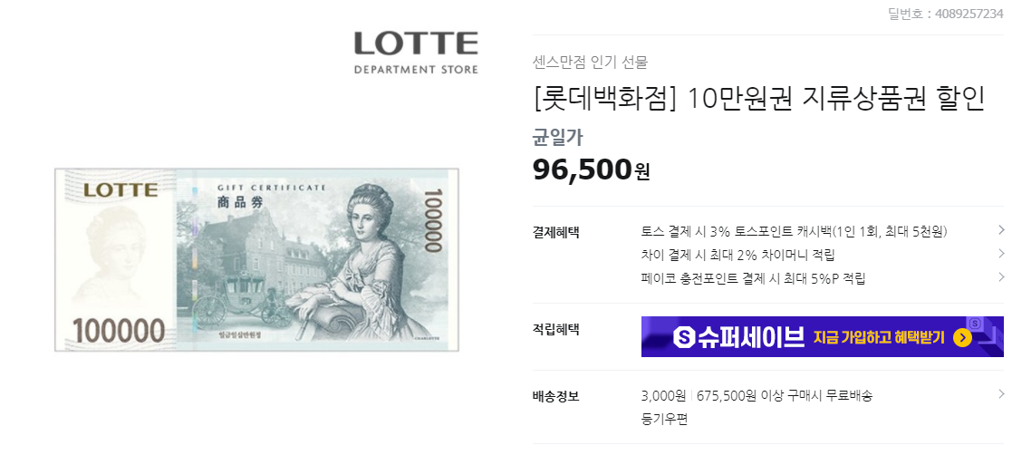 혹은 상픔권을 재매입하는 곳에서 97000원에 상품권을 매입하고 있다면, 적어도 97000에 상품권을 사야 본전이겠죠.