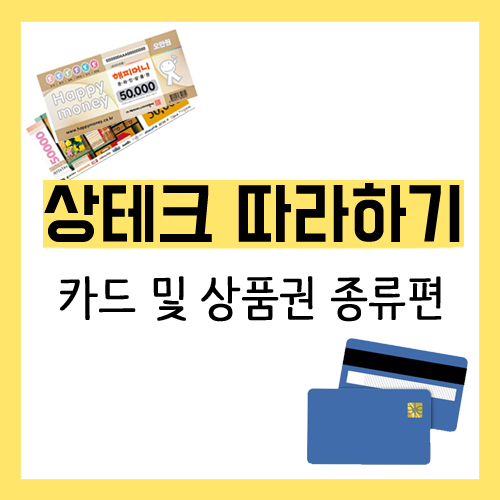 이번 글에서는 상테크 가능 카드와 상품권을 다뤄 보았는데요,